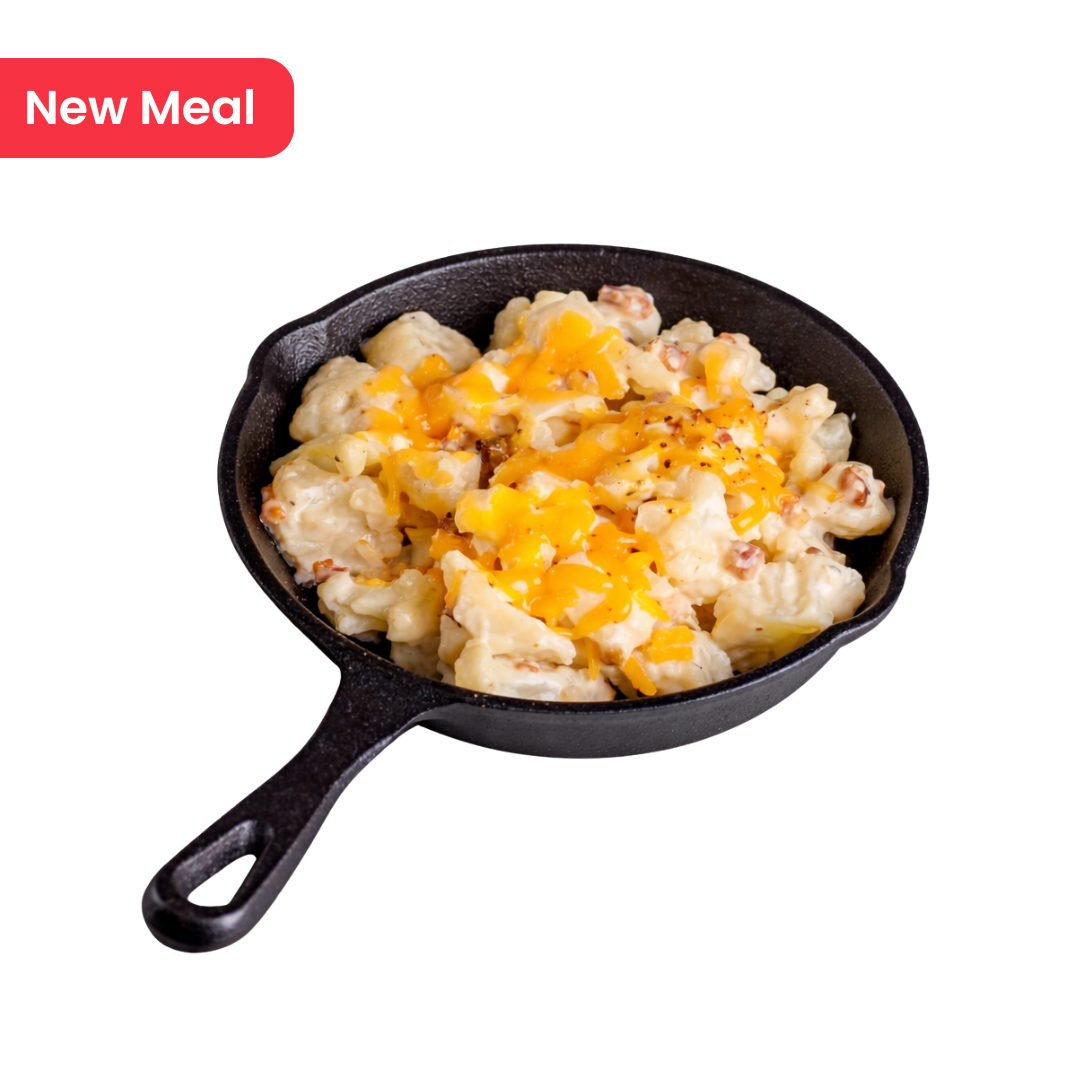 The cheesiest keto mac n' cheese is back! You can now have our new loaded cauli mac with the best selling Buttermilk Chicken all in one dish. This is a super comforting meal you're going to want on repeat this season. Best part? It's less than ten net carbs per serving, and has almost 50 grams of protein and healthy fats!