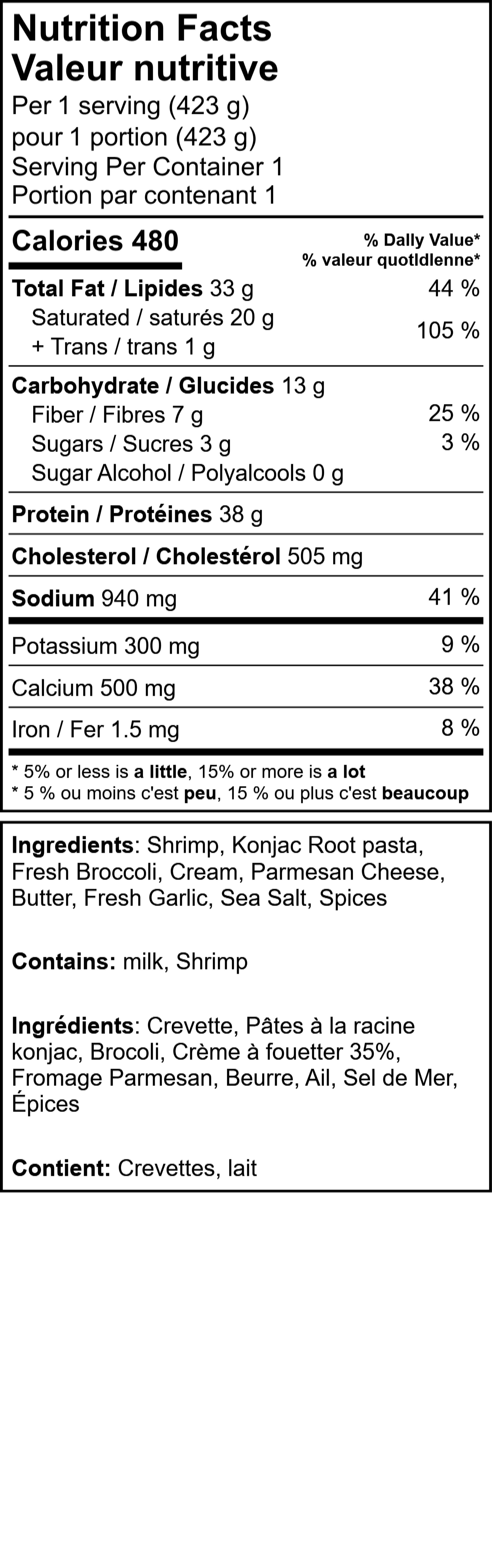 Dive into a culinary delight with our Shrimp Alfredo on Konjac Noodles, crafted for the health-conscious embracing a low-carb lifestyle. Indulge in succulent shrimp, seasoned with authentic spices, nestled atop a bed of konjac noodles — the ultimate guilt-free pasta alternative. Each bite is smothered in a creamy, homemade Alfredo sauce, rich in flavor yet light on carbs. THIS MEAL CAN NOT BE FROZEN.