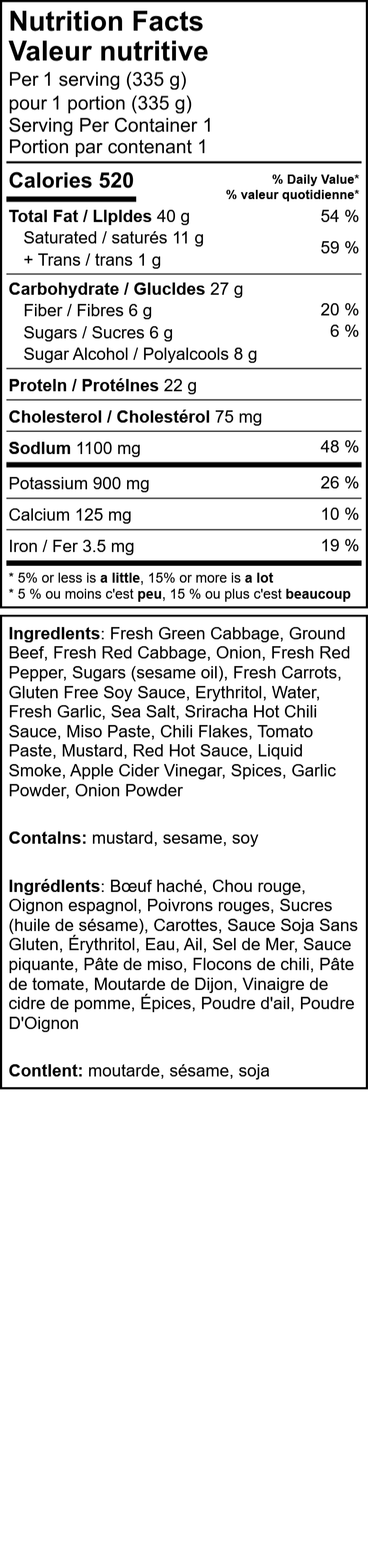 Sticky Korean Beef is a sweet and savoury dish you'll want on repeat. Made with locally sourced ground beef, fresh chopped cabbage, onion and carrot, all stir fried in a soy chilli miso sauce. If you are a Korean food lover, we promise this will hit the mark, and if you're new to Korean food, you've been missing out but we'll help you make up for lost time.