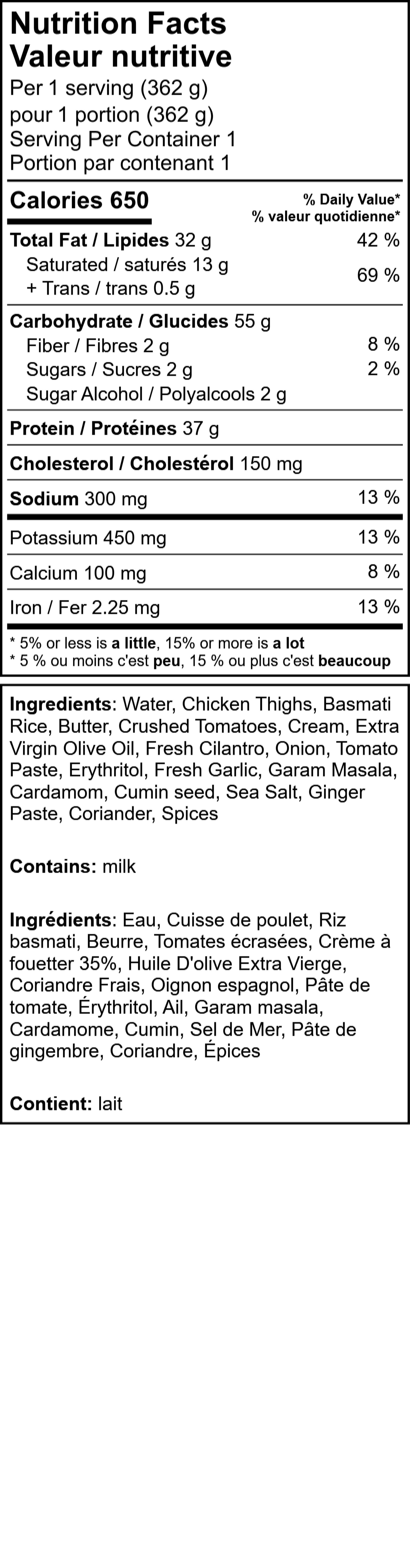 Indulge in the rich and comforting flavours of our Butter Chicken on Basmati Rice, crafted for a balanced and healthy lifestyle. Tender chicken is simmered in a creamy, aromatic sauce made from scratch, bursting with spices like garam masala, cardamom, cumin, and coriander. Paired with fragrant basmati rice, this dish offers the perfect balance of healthy carbs and good protein. Every bite is a delightful experience, leaving you feeling satisfied, energized, and nourished. Enjoy a gourmet meal that brings warmth and joy to your table, proving that healthy eating can be both delicious and fulfilling!