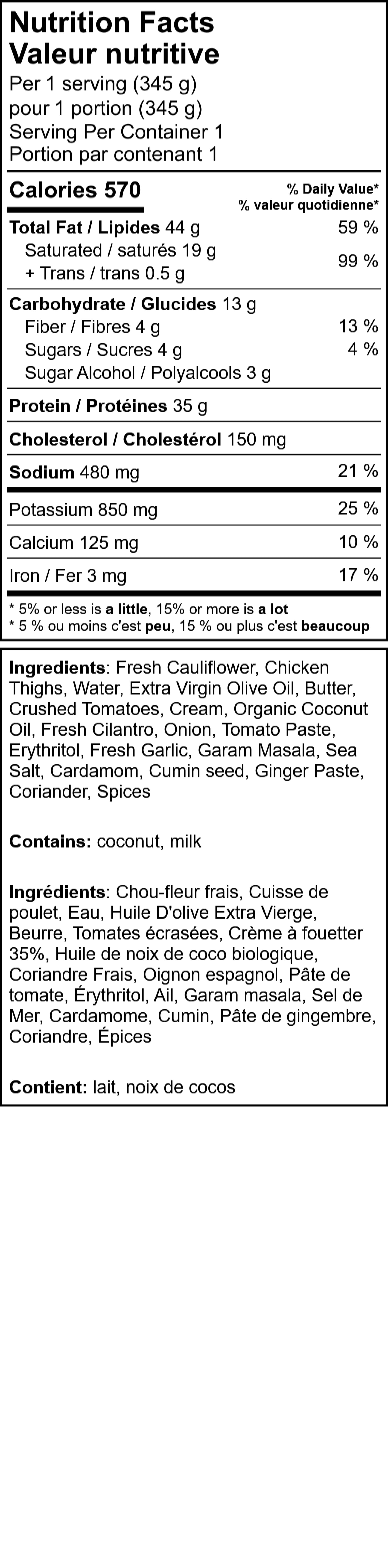 Tender chicken thighs simmered in a creamy, spice-rich sauce with garam masala, cardamom, cumin, and coriander. Served over fluffy cauliflower rice, this keto-friendly dish is satisfying, nourishing, and full of flavour. Made from scratch with wholesome ingredients like crushed tomatoes, fresh garlic, and ginger—it’s healthy eating made delicious.