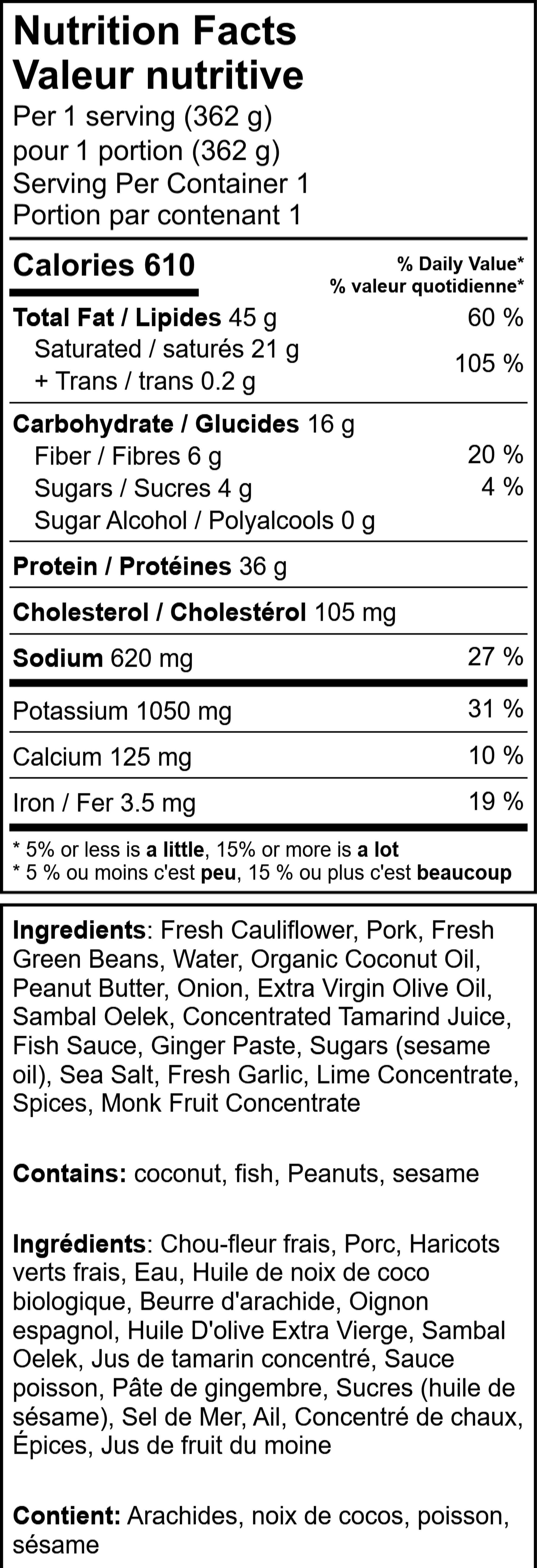 Spice up your mealtime with our Thai Peanut Pork with Green Beans over Cauliflower Rice, a tantalizing dish crafted for those on a low-carb path. Enjoy succulent pork sautéed with fresh green beans and smothered in a spicy, nutty Thai peanut sauce that dazzles with hints of tamarind, ginger, and lime. This flavour-packed pork sits atop a bed of fluffy cauliflower rice, making for a satisfying meal that’s big on taste but low on carbs. Prepared with whole food ingredients and a dash of culinary magic, this dish is perfect for anyone looking to indulge their taste buds while keeping health in check.