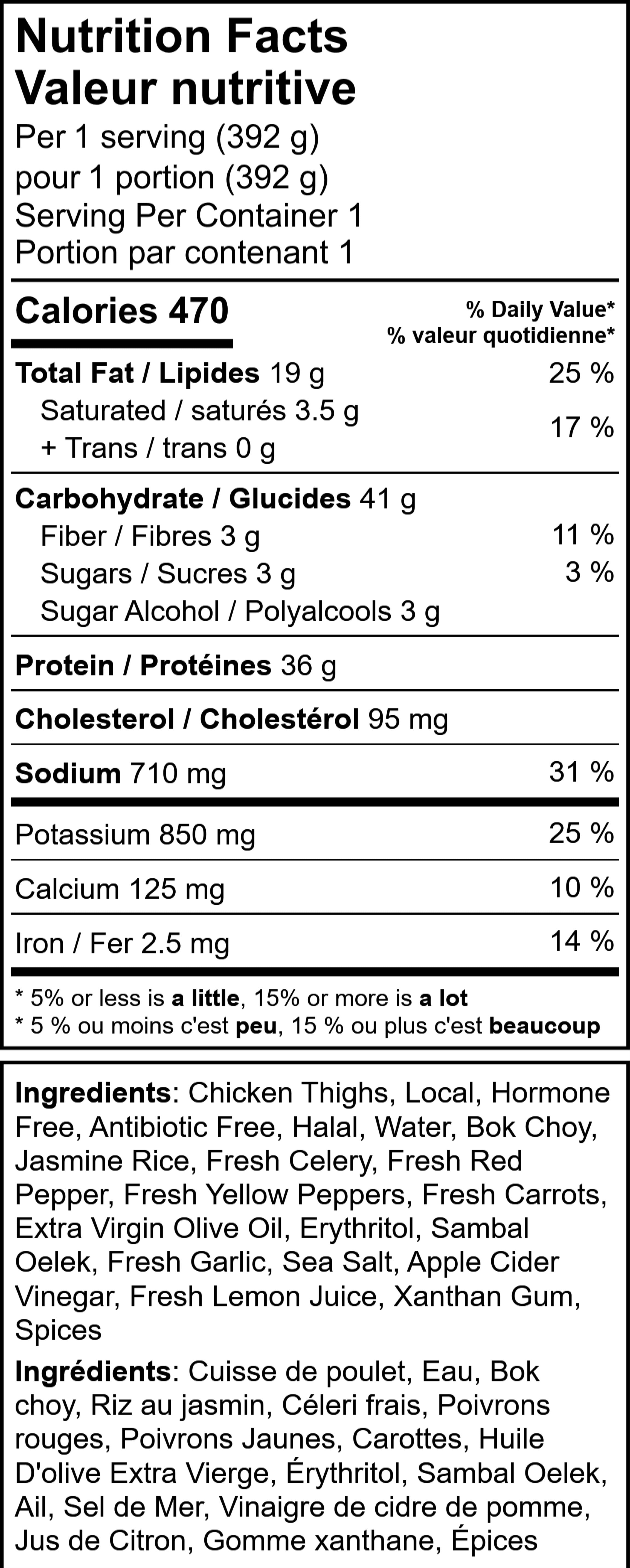 Sweet, savoury, and seriously satisfying! Our Sweet Chili Chicken Bowl with Jasmine Rice features tender chicken thighs glazed in a house-made, sugar-free sweet chili sauce, served with sautéed bok choy, cauliflower, and vibrant peppers over fluffy jasmine rice. With 35 grams of protein and made entirely from scratch with wholesome ingredients, it’s a balanced, flavour-filled meal you’ll crave again and again.